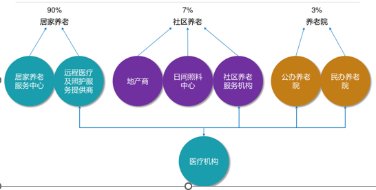 当前我国的养老形态分为:社区养老、居家养老、虚拟养老、机构养老四个主要方式。近九成的老年人会选择居家养老,剩余仅一成的老人分散在社区养老和入住专业的养老院。由于现在我国养老行业良莠不齐,其中的机构养老和社区养老这两种社会养老服务各有局限性,在惠普性、专业性、供需匹配性、可持续性这几个维度上难以兼顾,难以大规模、便捷普惠提供较高质量的养老服务。